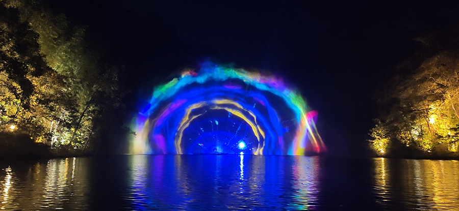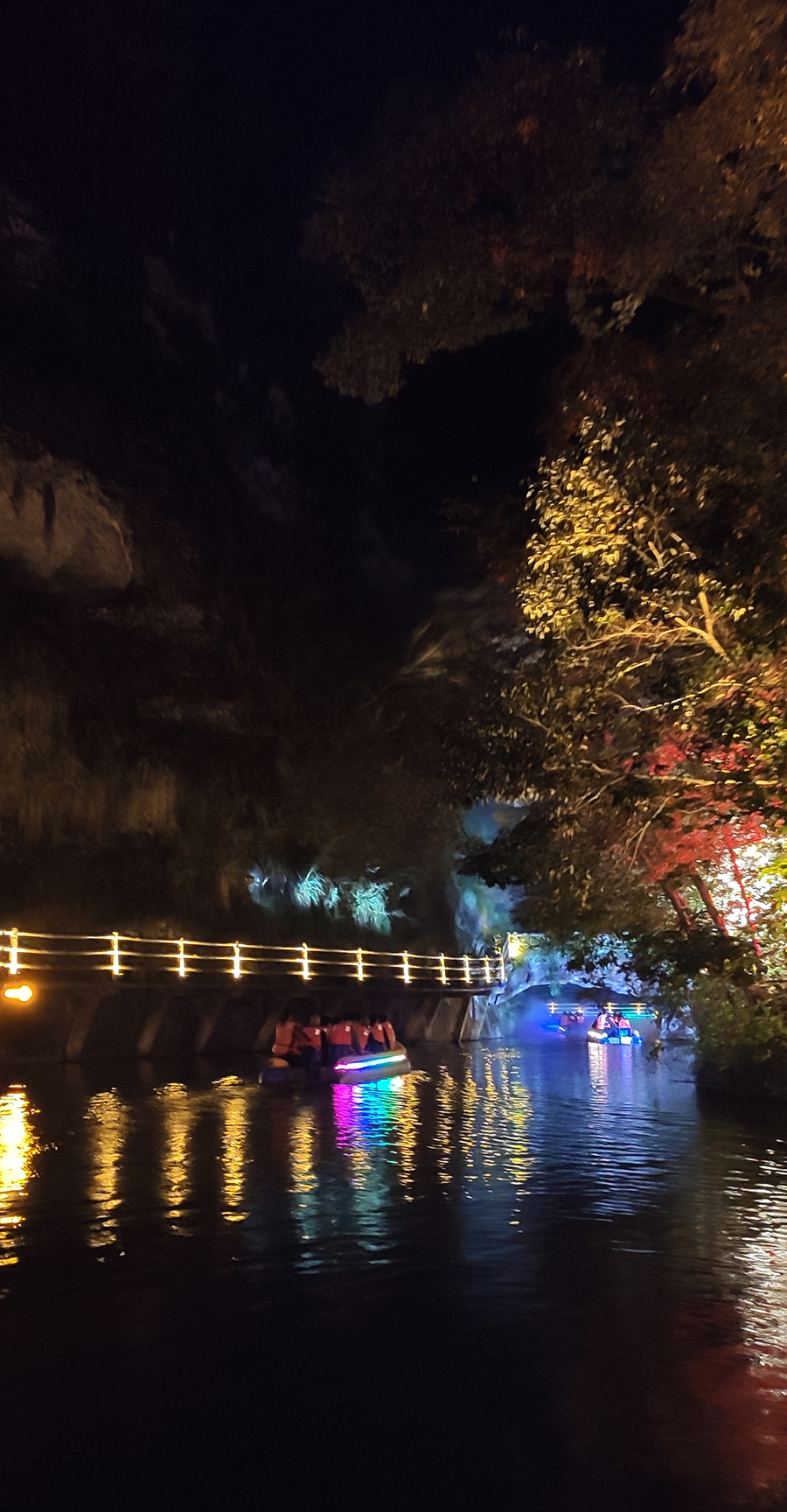 入夜,黨支部一行來到本次文旅最精彩的項(xiàng)目:“夜游九龍?zhí)?rdquo;。以“夜游九龍?zhí)叮o享夜的美”為主題的“行進(jìn)式”水上峽谷夜游景區(qū),利用現(xiàn)代化聲光技術(shù)與景區(qū)自然美景有機(jī)融合,讓您充分感受“詩意山水,光影幻境”。聽蛙唱蟲奏,觀月下仙境,月光映水,水波映月,加上臨水棧道邊笛聲陣陣......讓您真切的領(lǐng)會(huì)空靈、幽靜、夢(mèng)幻的別樣意境。一路的聲光風(fēng)景讓人目不暇接,如果不是身臨其境,絕對(duì)感受不到那光影與大自然結(jié)合產(chǎn)生的絕妙意境。