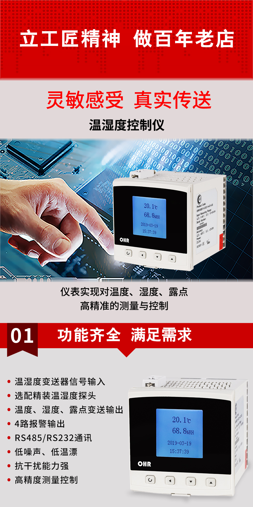 虹潤(rùn)公司是專業(yè)生產(chǎn)環(huán)境監(jiān)測(cè)儀表的國(guó)家專精特新“小巨人”企業(yè)。生產(chǎn)的盤裝式溫濕度控制器,具有溫度、濕度、露點(diǎn)高精準(zhǔn)的測(cè)量,壁掛式結(jié)構(gòu),IP65防護(hù)穩(wěn)定性強(qiáng),高抗干擾,帶RS485/RS232通訊輸出等級(jí)等特點(diǎn)。產(chǎn)品獲得一種手持式低功耗溫濕度檢測(cè)儀、大屏幕溫濕度記錄儀等2項(xiàng)國(guó)家發(fā)明專利,主持起草物聯(lián)網(wǎng)智能溫度儀表通用技術(shù)條件、冷鏈溫度記錄儀等2項(xiàng)國(guó)家標(biāo)準(zhǔn),通信系統(tǒng)多通道數(shù)據(jù)采集控制終端規(guī)范軍用標(biāo)準(zhǔn),以及現(xiàn)場(chǎng)設(shè)備集成等5項(xiàng)智能制造國(guó)家標(biāo)準(zhǔn),參與國(guó)際5G標(biāo)準(zhǔn)制定,取得溫濕度儀表等2項(xiàng)相關(guān)軟件著作權(quán)。產(chǎn)品廣泛應(yīng)用于工業(yè)現(xiàn)場(chǎng)、農(nóng)業(yè)大棚、倉(cāng)儲(chǔ)物流、地下管廊、養(yǎng)殖孵化、配電機(jī)房等諸多領(lǐng)域。