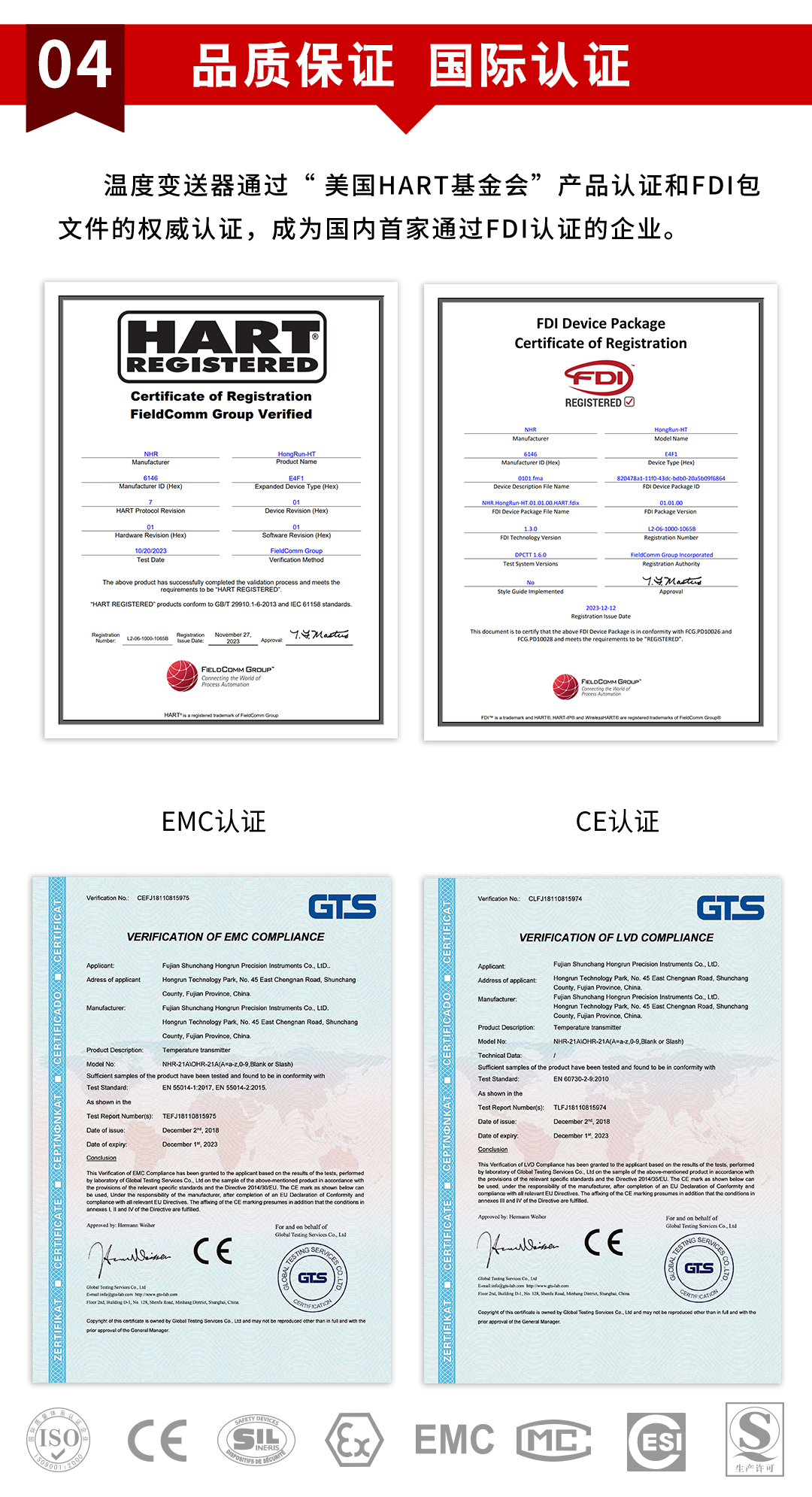虹潤公司是專業(yè)生產(chǎn)溫度變送器的國家專精特新“小巨人”企業(yè)。生產(chǎn)的LCD 隔離智能溫度變送器,具有熱電阻熱偶信號全切換輸入,精度高,穩(wěn)定性好,輸入輸出隔離,帶HART或RS485通訊等特點。該產(chǎn)品不僅通過HART基金會認證、德國萊茵 CE 認證與 SIL 功能安全認證,還獲得具備減震抗干擾能力的溫度變送器、信號隔離器、一種二端子模塊、無源信號隔離器等4項國家發(fā)明專利,主持起草物聯(lián)網(wǎng)智能溫度儀表、現(xiàn)場設備工具(FDT)接口規(guī)范、工業(yè)過程測量和控制系統(tǒng)用溫度變送器等3項國家標準,以及通信系統(tǒng)多通道數(shù)據(jù)采集控制終端規(guī)范軍用標準,參與國際5G標準制定,取得高精度溫度變送器等5項相關軟件著作權。產(chǎn)品廣泛應用于石油、化工、電力、冶金、制藥、食品、水處理等各種工業(yè)領域。