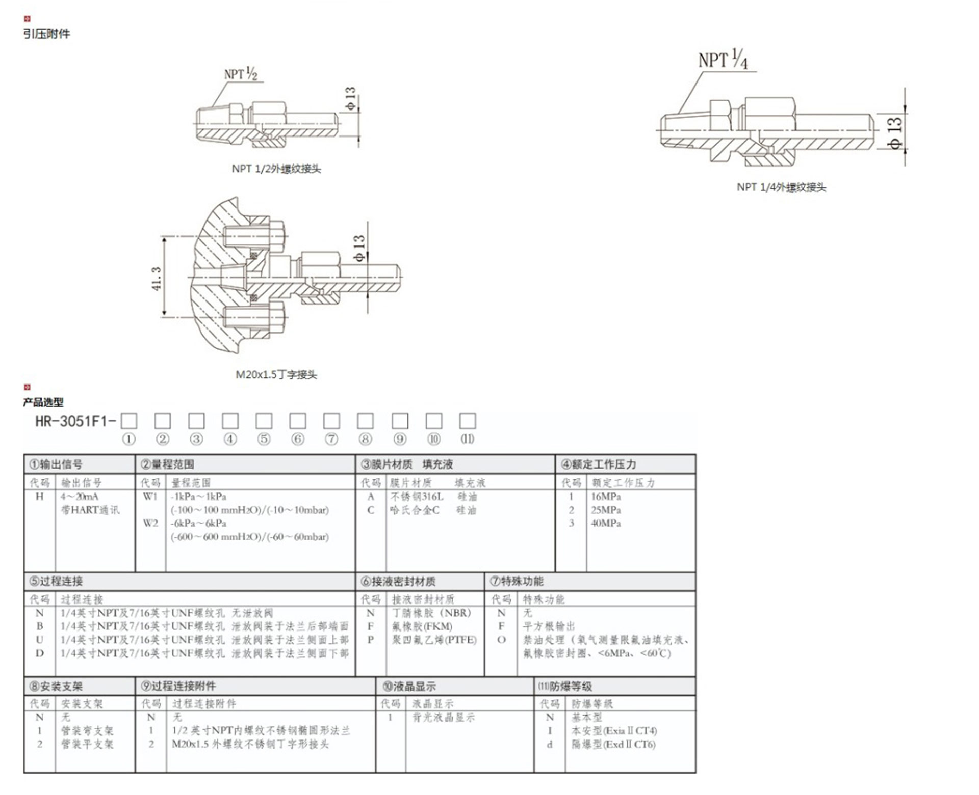 HR-3051F1智能單晶硅微差壓變送器能準確的測量差壓,并把它轉(zhuǎn)換成4~20mADC的輸出信號。該變送器可通過三按鍵本地操作,或通用手操器、組態(tài)軟件、以及手機APP遠程操作,在不影響4~20mA DC的輸出信號的同時,進行顯示與組態(tài)。