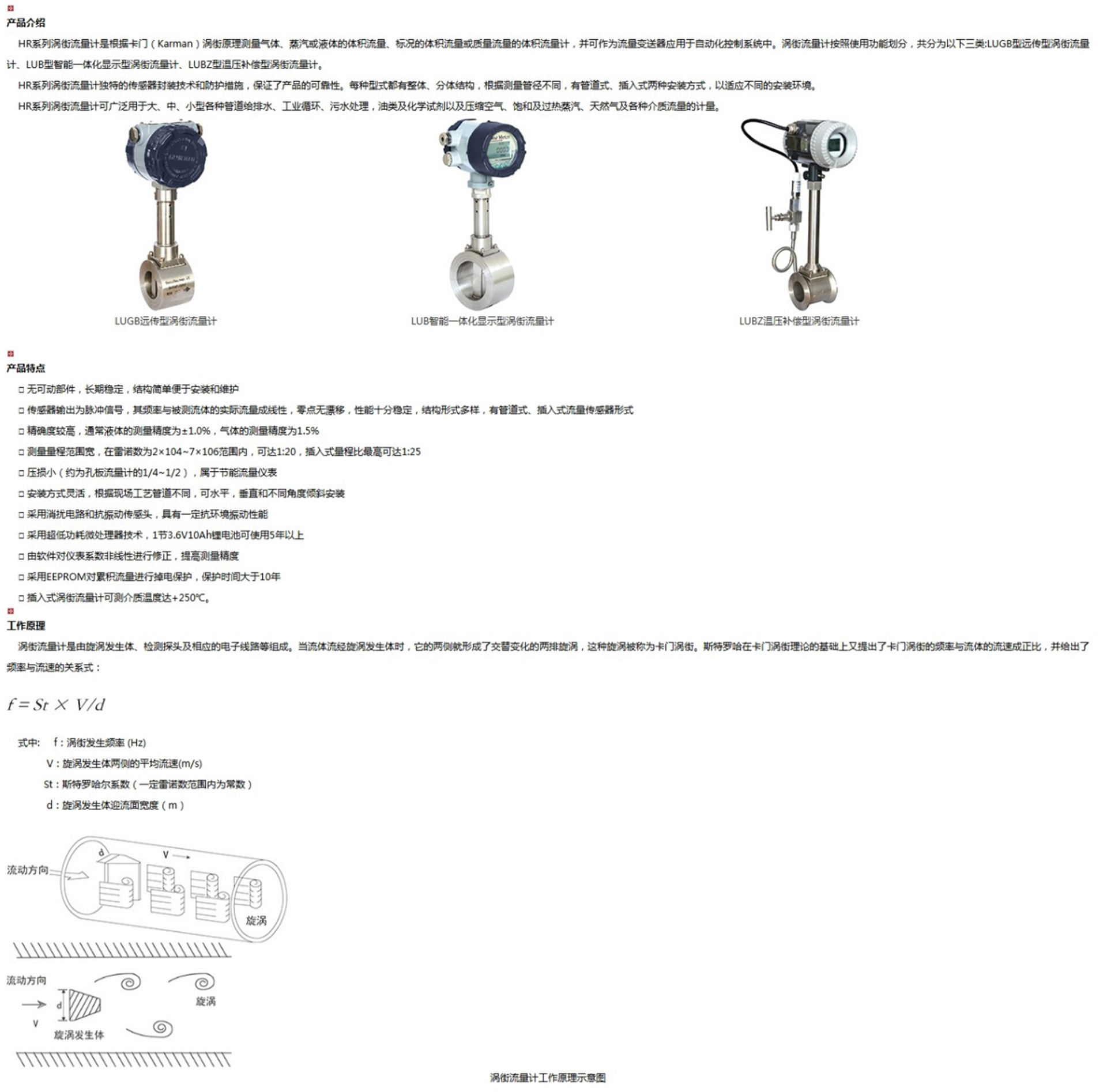 HR系列渦街流量計是根據(jù)卡門(Karman)渦街原理測量氣體、蒸汽或液體的體積流量、標況的體積流量或質量流量的體積流量計,并可作為流量變送器應用于自動化控制系統(tǒng)中。廣泛用于大、中、小型各種管道給排水、工業(yè)循環(huán)、污水處理,油類及化學試劑以及壓縮空氣、飽和及過熱蒸汽、天然氣及各種介質流量的計量。